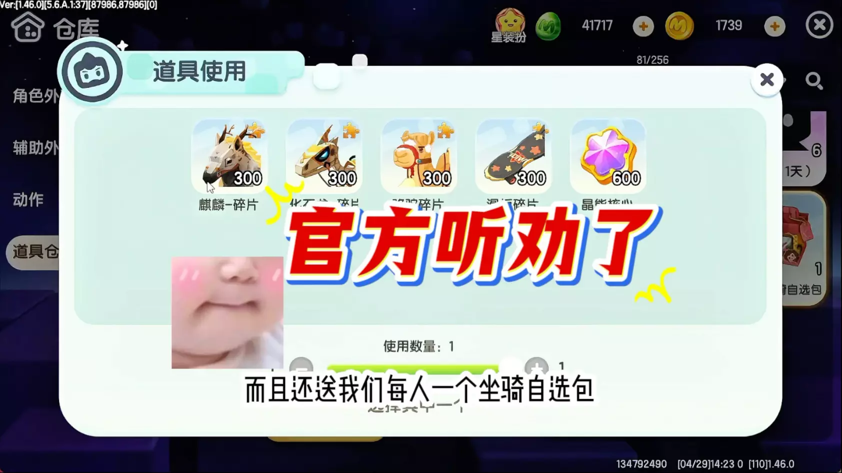 玩家分享在《迷你世界》中,零氪将萌小狸坐骑从5级升级到10级,成功获得大号的第二个满级彩色坐骑,过程中还抽取到中式宫灯碎片等奖励。