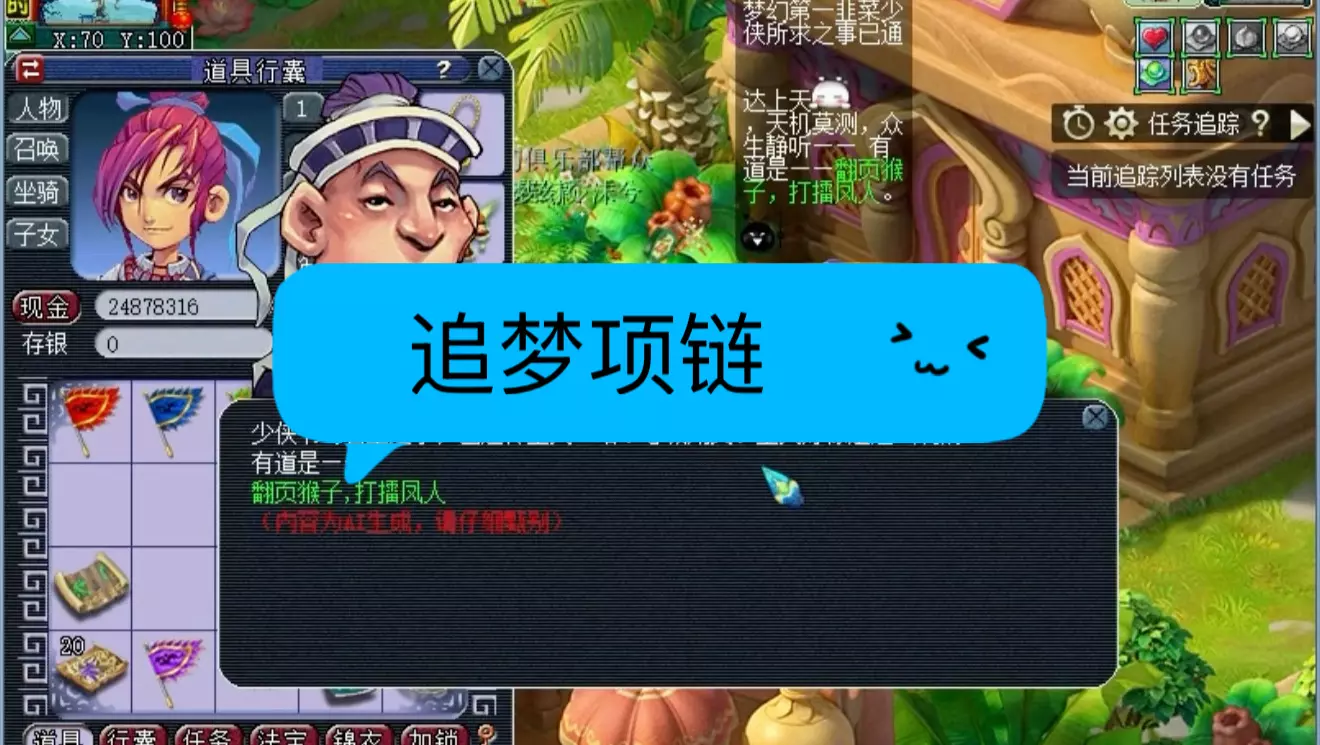 咱就做日常,天地星和上古,咱还没时间做。升到了70级之后,日常任务也增加了,宠斗,魔龙,还有法宝。如果想玩问道手…