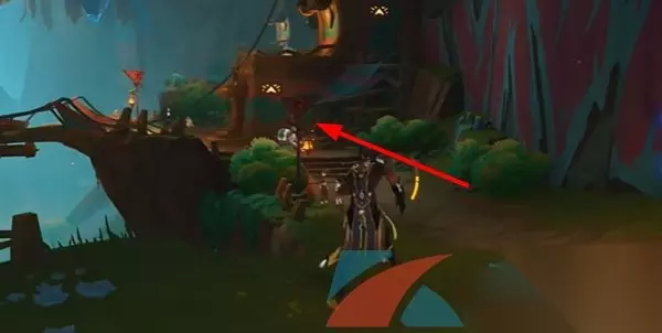 2、来到这个位置后,跟随箭头指引方向移动,去到桥的对面。