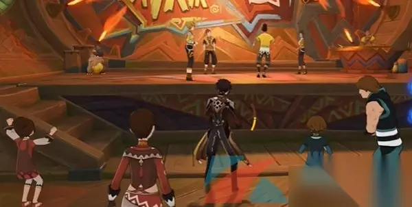 原神5.0舞舞舞成就怎么做? 答:在回声之子观看钻头热舞的比赛即可解锁该成就。 1、首先我们跟随指引送传到回声之子右侧的传送点位置。