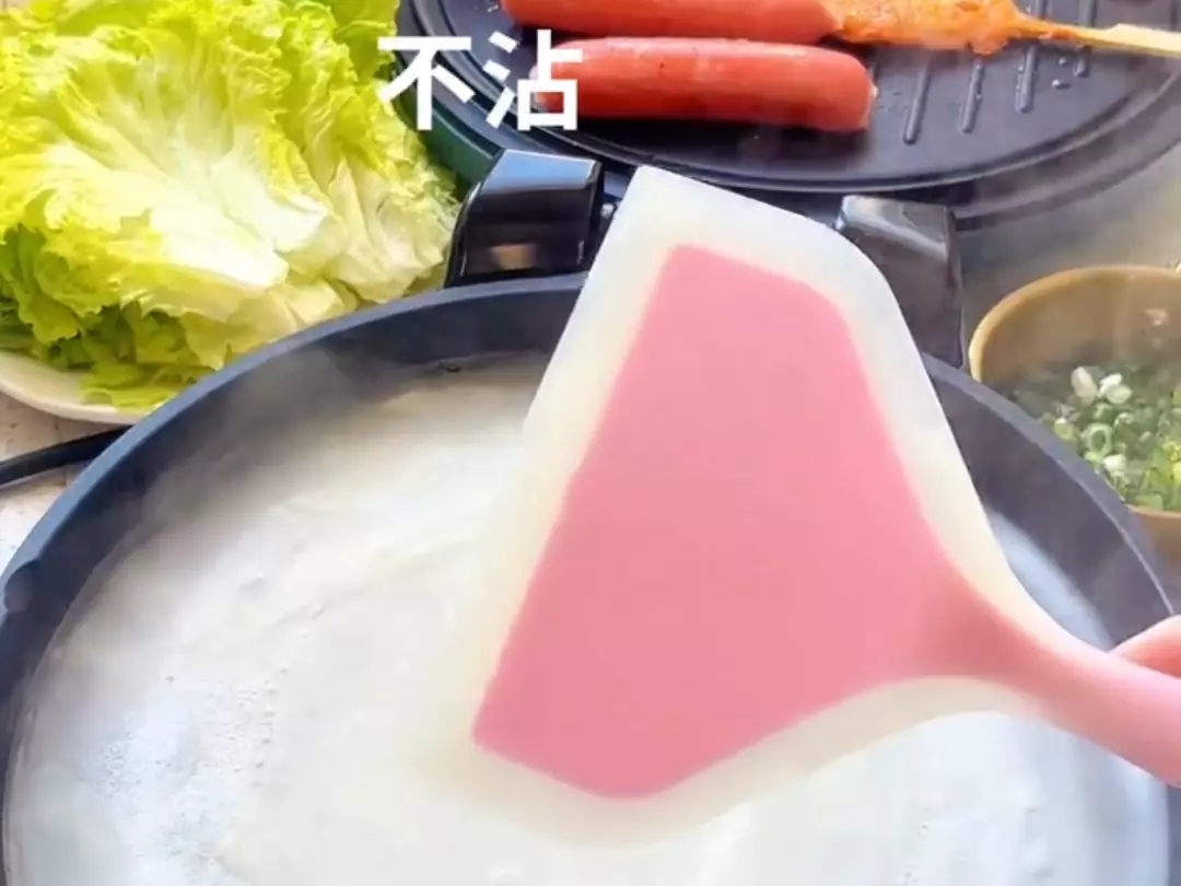 分享电饼铛做煎饼果子的美食教程,用大宽铲子操作简单易上手,还可同时煎烤配菜,在家就能轻松做出美味的煎饼果子,别让家里的电饼铛闲置啦。