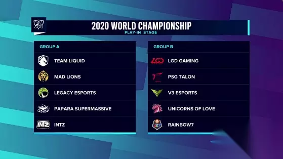 A组:TL、MAD、LGC、SUP、INTZ B组:LGD、PSG、V3、UOL、R7 入围赛将于9月25日至9月30日进行,10支队伍将会被分为两个小组,各分组通过单循环赛制来进行比赛。小组第五直接淘汰。组内第三第四的队伍进行一场BO5比赛,胜者同另一组的第二名进行一场BO5比赛,最终的胜者将携手小组第一晋级小组赛。 正赛小组抽签结果:
