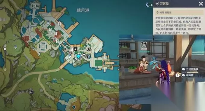 2-4 璃彩 璃月港-琉璃亭门口 出售食谱2个:岩港三鲜、干锅腊肉