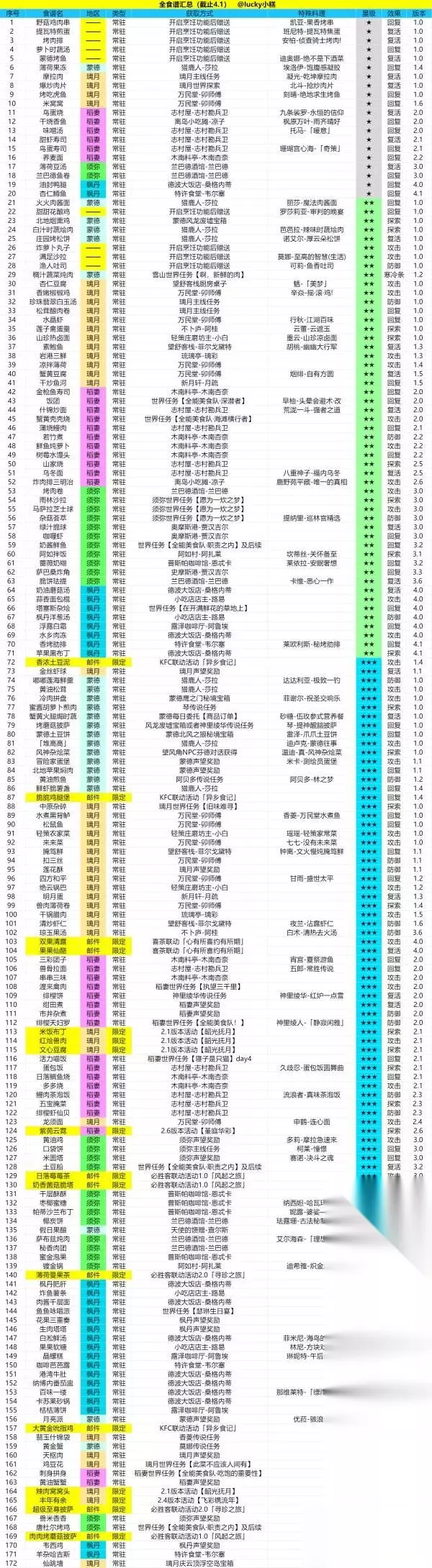 这里附上截止4.1全食谱的统计