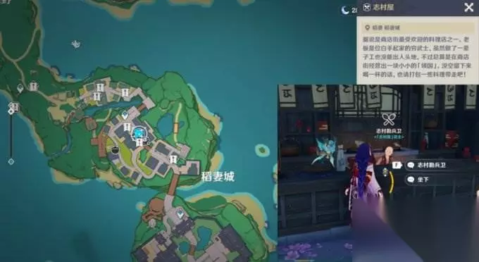 3-3 志村勘兵卫 稻妻城-志村屋 出售食谱13个:鸟蛋烧、味噌汤、甜虾寿司、鸟蛋寿司、什锦炒面、蒲烧鳗肉、山家烧、乌冬面、兽骨拉面、蛋包饭、鳗肉茶泡饭、五宝腌菜、绯樱虾仙贝
