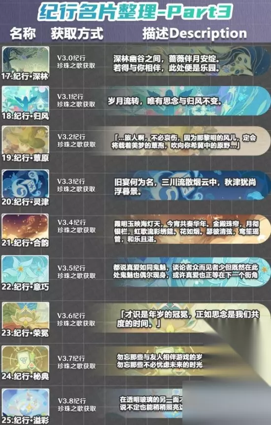《原神》截止3.8版本绝版限定名片图鉴及获取方式一览,开服以来的所有活动/庆典/纪行名片进行了分类整理,来看看你的包里存了几张~ 《原神》3.8下半版本即将更新,本次为大家带来截止3.8版本绝版限定名片图鉴及获取方式一览,将开服以来的所有活动/庆典/纪行名片进行了分类整理,来看看你的包里存了几张~