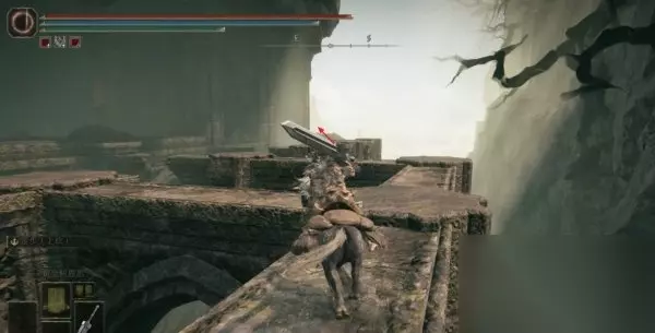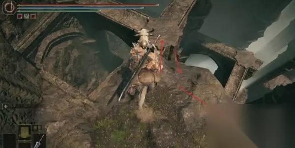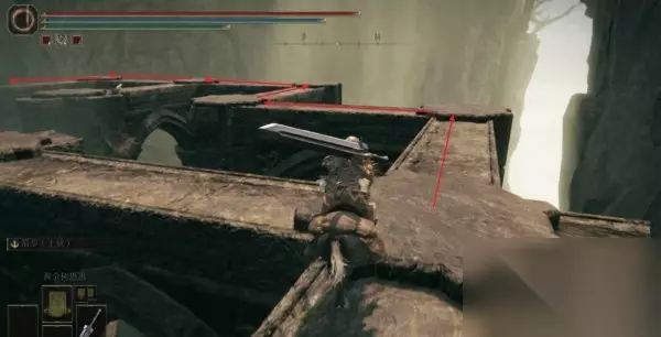 5、这里记住不要进入左边的建筑里,我们需要往最前方有绿地的地方跳。