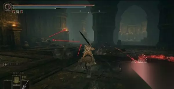 二、获取方法 1、此护符是从赐福【劳弗古遗迹(西方)】附近的宝箱中获得,我们从这个赐福点出发,进入前方的遗迹建筑内。