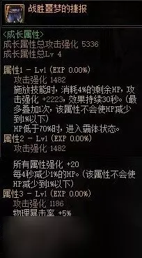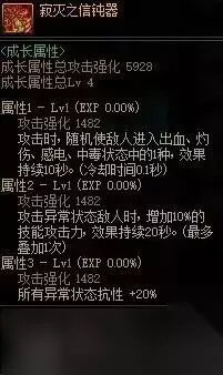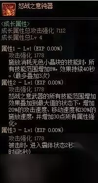属性分析: 词条1每0.1s通过攻击随机赋予敌人一种异常,实战中相当于直接赋予敌人四种异常状态;词条3增加所有异常状态抗性,可能会与睡眠手镯不太适配;词条4在自异常状态下恢复HP与MP,可配合异常手镯,在被击时给予一些生存性效果。 单论武器伤害不如制式武器,但如果角色有较好的多异常自定义时,可以考虑使用邪龙武器进行搭配,从而获得更高的总体提升。 当前版本使用建议: 常规无需使用,自定义带有多个“异常技攻”词条时可选择使用。 史诗改版属性前瞻: 改版中该史诗没有属性变动,结论不变。 狂龙武器-怒战之意武器