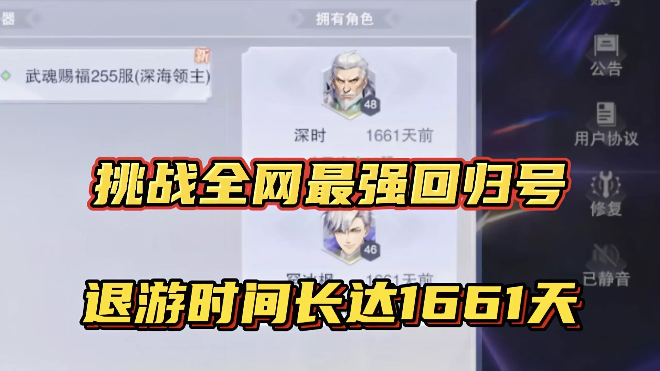 斗罗大陆魂师对决:挑战全网最强回归号!退游时间长达1661天!