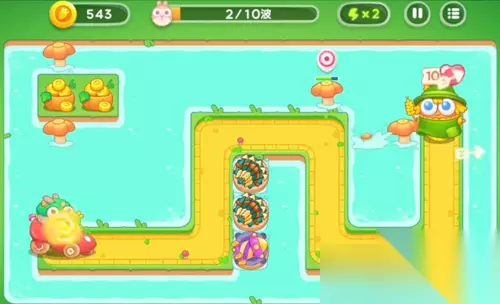保卫萝卜4绿野奇缘第32关攻略 1、先是进行多重箭的摆放,在中间是一个。