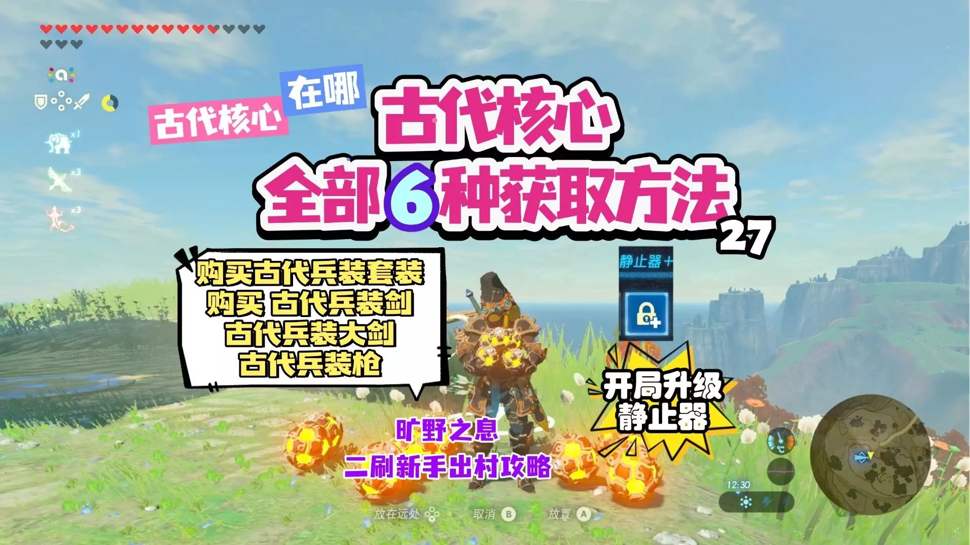 古代核心在哪 详细位置分布开局初始台地附近就能拿 达卡索神庙 亚卡玛塔巨大的力量神庙 卡亚米瓦盾从水中现 购买古代兵装套装 升级古代兵装套装 购买古代兵装剑 古…