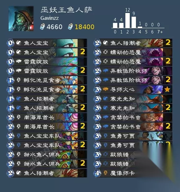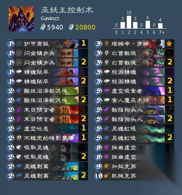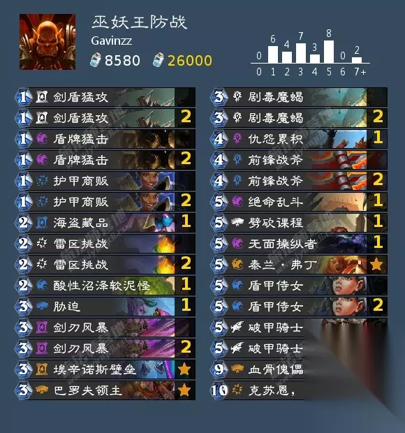 AAEBAf0GCPLtA/H7AoWgBOysA7jOA47UA4jvA5LkAwuY6gOsnwSCoASDoATnoASaB4ixA4oBrMsDzNIDzdIDAA== 巫妖王的作弊牌是你每有一张重复牌,可以造成2点伤害。这套就是正常的控制术加上机克体系。起始手牌最好有1费怪,可以下去帮你挡第一刀,不然很痛。后面正常解场,最后用机克斩杀即可。注意满足机克斩杀条件。 萨满: