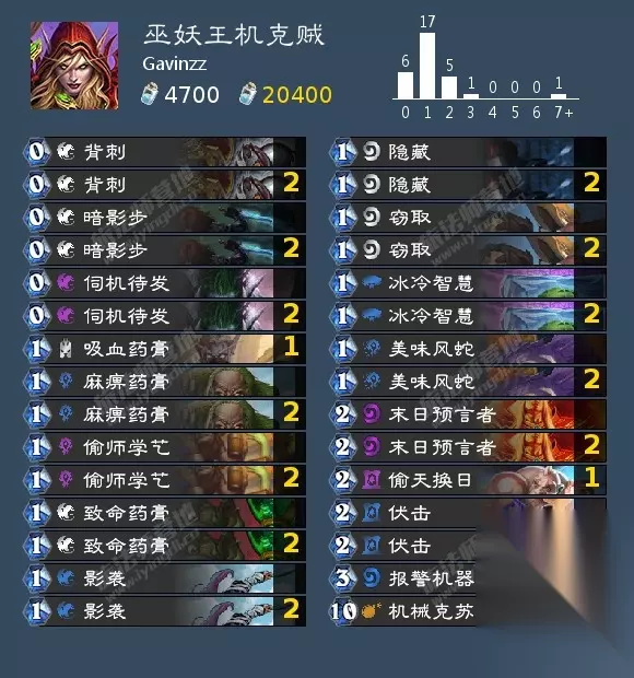 AAEBAf0EAA+Y6gPXvgPrugL8ngTmnwTonwSaB5YFywS8CPuwA/jMA8fOA8bBAtLsAwA= 巫妖王的作弊牌是让你的血量变为1,这套构筑核心是暗金教侍从、法术共鸣、破甲骑士。开局必须刷出暗金教侍从+法术共鸣的起始手牌,在巫妖王打出作弊牌之后偷到他的作弊牌,这样我们可以让巫妖王变成1血+30甲。之后苟活,不要被打死了,然后在巫妖王提刀之前下破甲骑士,随即斩杀即可。 潜行者: