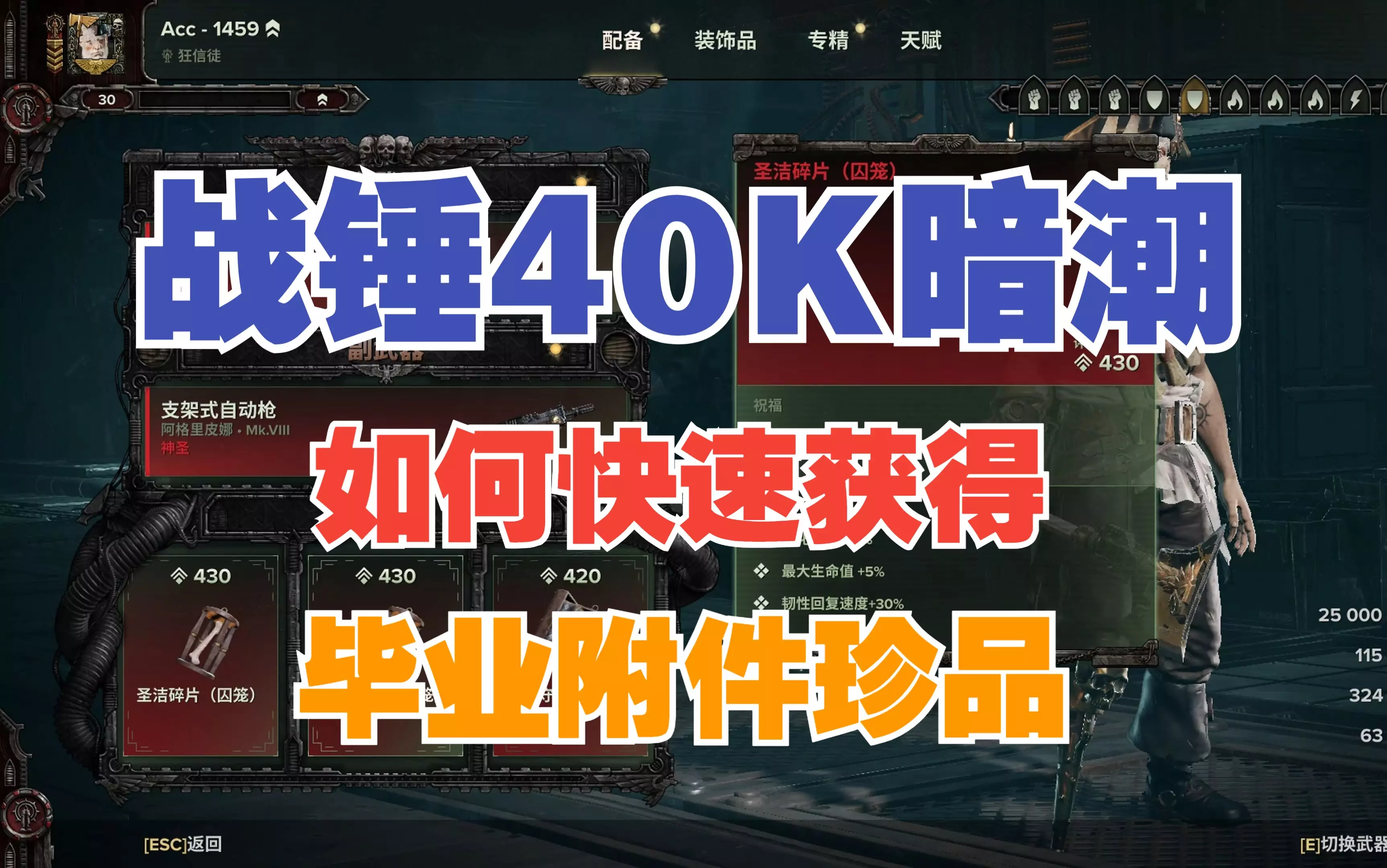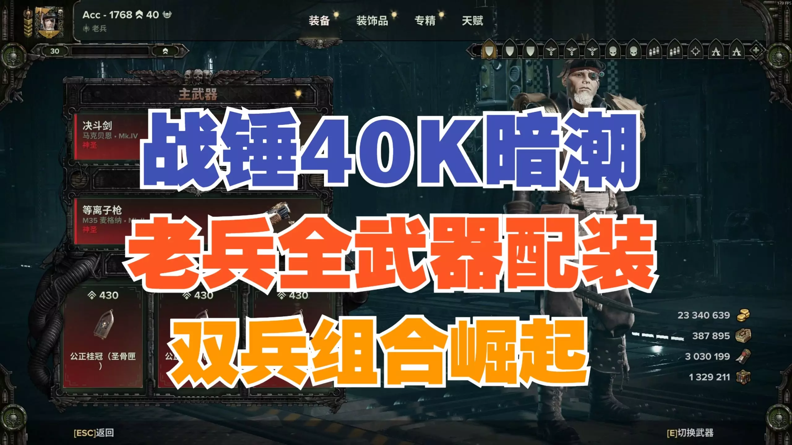 这是《战锤40K暗潮》狂信徒的新版本天赋与配装展示,包含重型开膛剑、涤罪火焰喷射器等武器的属性、专长与祝福,还有狂信徒的天赋加点,如“天灾”被动等,能提升战斗输出。