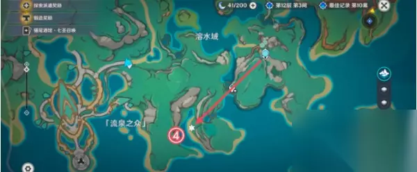 4、溶水域 传送到溶水域旁的七天神像,然后按照下图指示的路线过去就可以了。