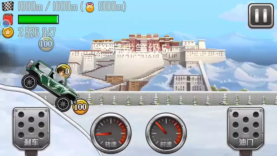 这是小五丶搞笑解说的《登山赛车之天朝历险》第五集早期视频,玩家驾驶飚风牧马人在布达拉宫赛道行驶,完成长时飞跃、疯狂飞跃等操作获取积分,展示了游戏的跑酷过程。