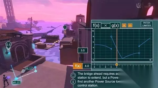 游戏内人物及场景画面 在《微积历险记》的游戏里,你将扮演一个可能被太阳风暴摧毁的星球上的女性角色-伊夸,你必须通过修复桥梁和传送器等建筑来应对即将到来的威胁。所有的谜题设计都需要通过微积分知识来解开,在游戏中你会看到熟悉的函数和象限,你需要推导公式,绘制出函数图像,从而激活机关并修复设施。