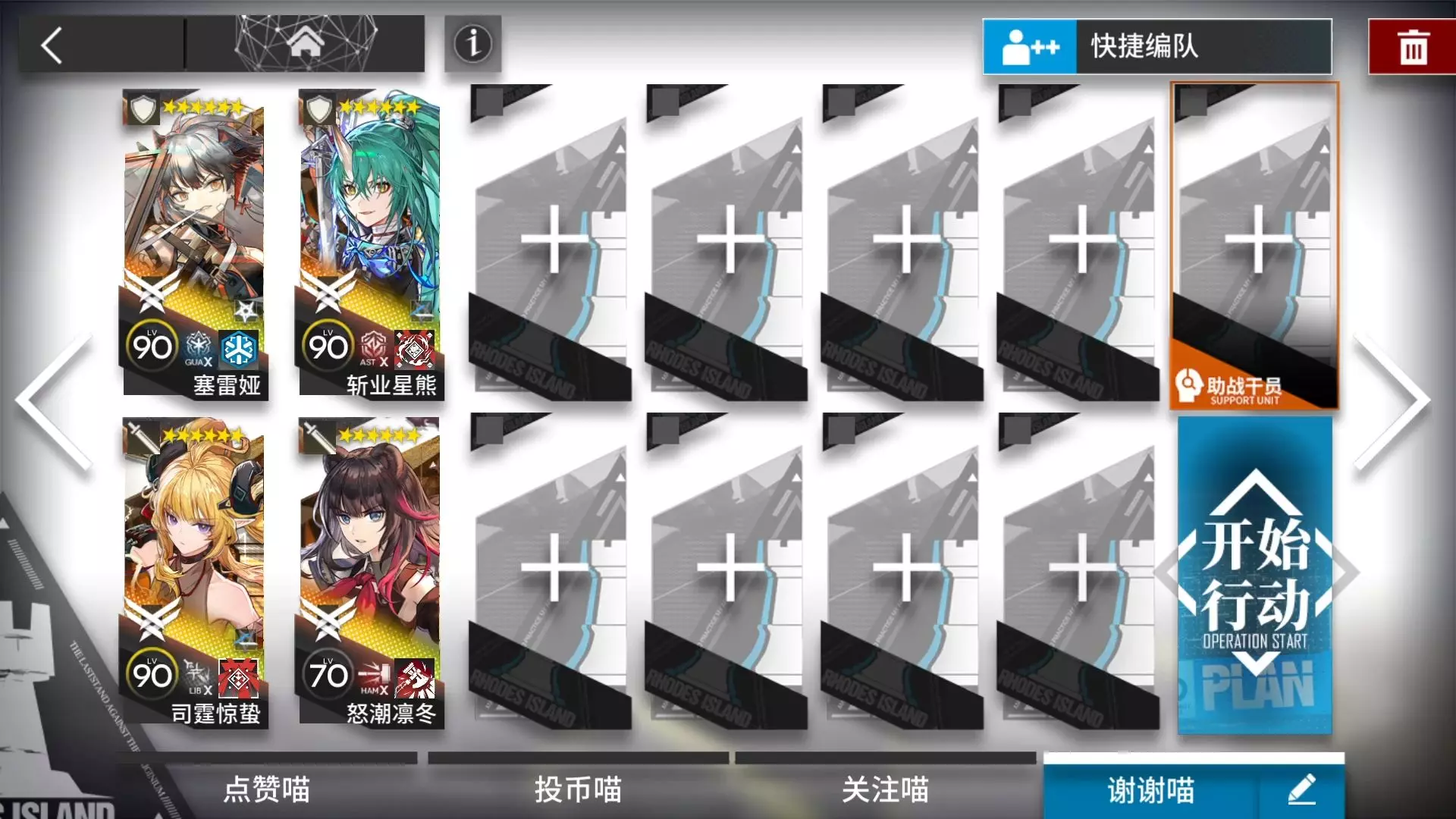 黍和塞可以换其他奶盾,质量高的奶盾给凛冬用就好,安姐带2开技能可以更快