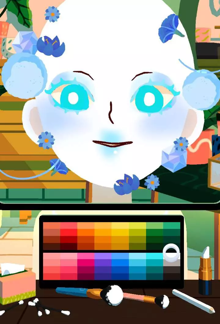 蓝色花朵妆容