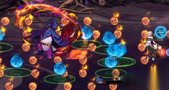 破防机制:火焰旋涡 二阶段机制,Boss在场地中间生成火焰旋涡,并持续掉落火焰魔力球 一边躲避一边拾取魔力球到进度条满后,站在火焰旋涡中TAB即可,机制结束后Boss进入200%增伤破防 5.普通-永生之爱尔珀
