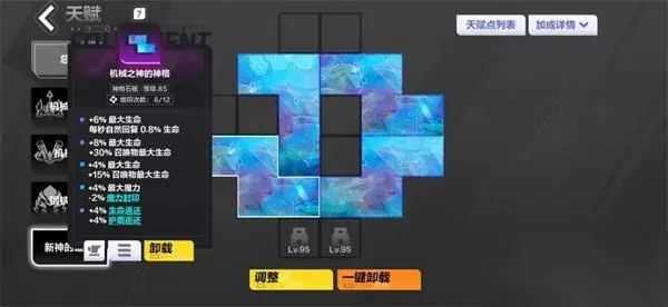 8.天赋的话找召唤物伤害,生命,抗性等,天赋如下,主要是机械之神要点出同构武装,机械师点出动能转化,其他可以看情况自己搭配,钢铁先锋缺伤害点映射博文强智,缺生存点帷幕,百恶不侵。
