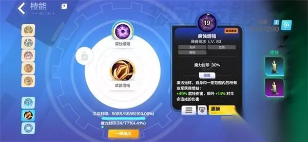 3.光环上,急速,各种增伤光环,根据魔力搭配。狂猛和武器增幅,大家可以看情况选。后期减魔力封印堆起来,可以四个光环都上。