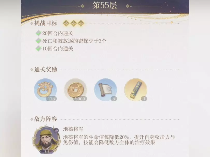 这是《如鸢》狐截尾地宫20层郭嘉的通用攻略,无密探要求,养得高的密探即可使用。四倍数回合需注意:密探出现禁止攻击标志要开大或普攻,出现禁止防御标志要下拉防御,若标志未消失损失惨重可重开。