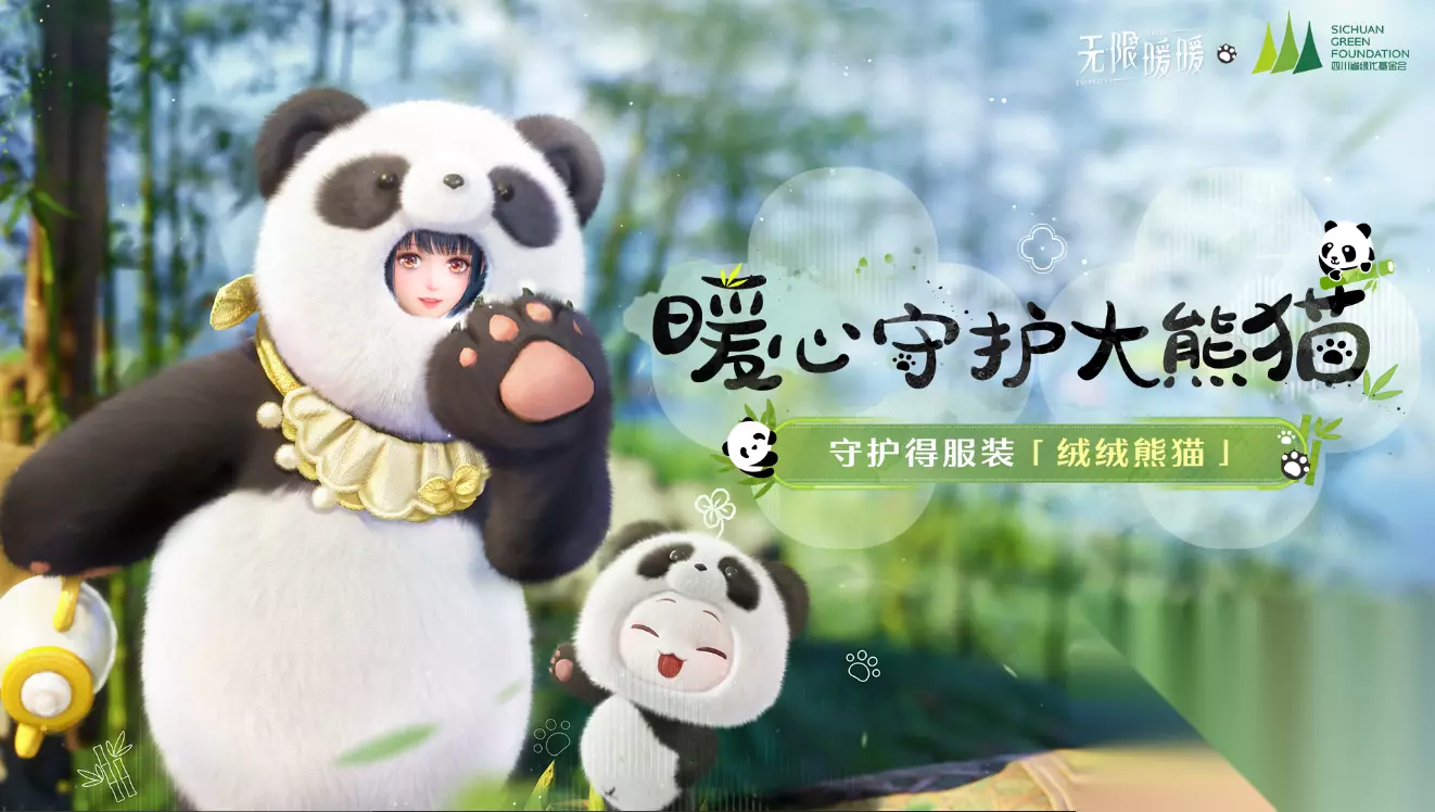 点滴温暖汇为无限,以爱守护熊猫家园!《无限暖暖》携手四川省绿化基金会,与大熊猫国家公园共同开展大熊猫保护与巡护科普等系列公益联动活动。 欢迎搭配师们一起来了解大熊猫科普知识,获取限定服装(๑•̀ㅂ•́)و✧