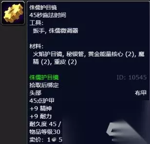 2、侏儒护目镜 45点护甲 +9 精神 +9 耐力