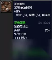3、巫毒面具 97点护甲 +14 智力 装备: 法术强度提高10点。