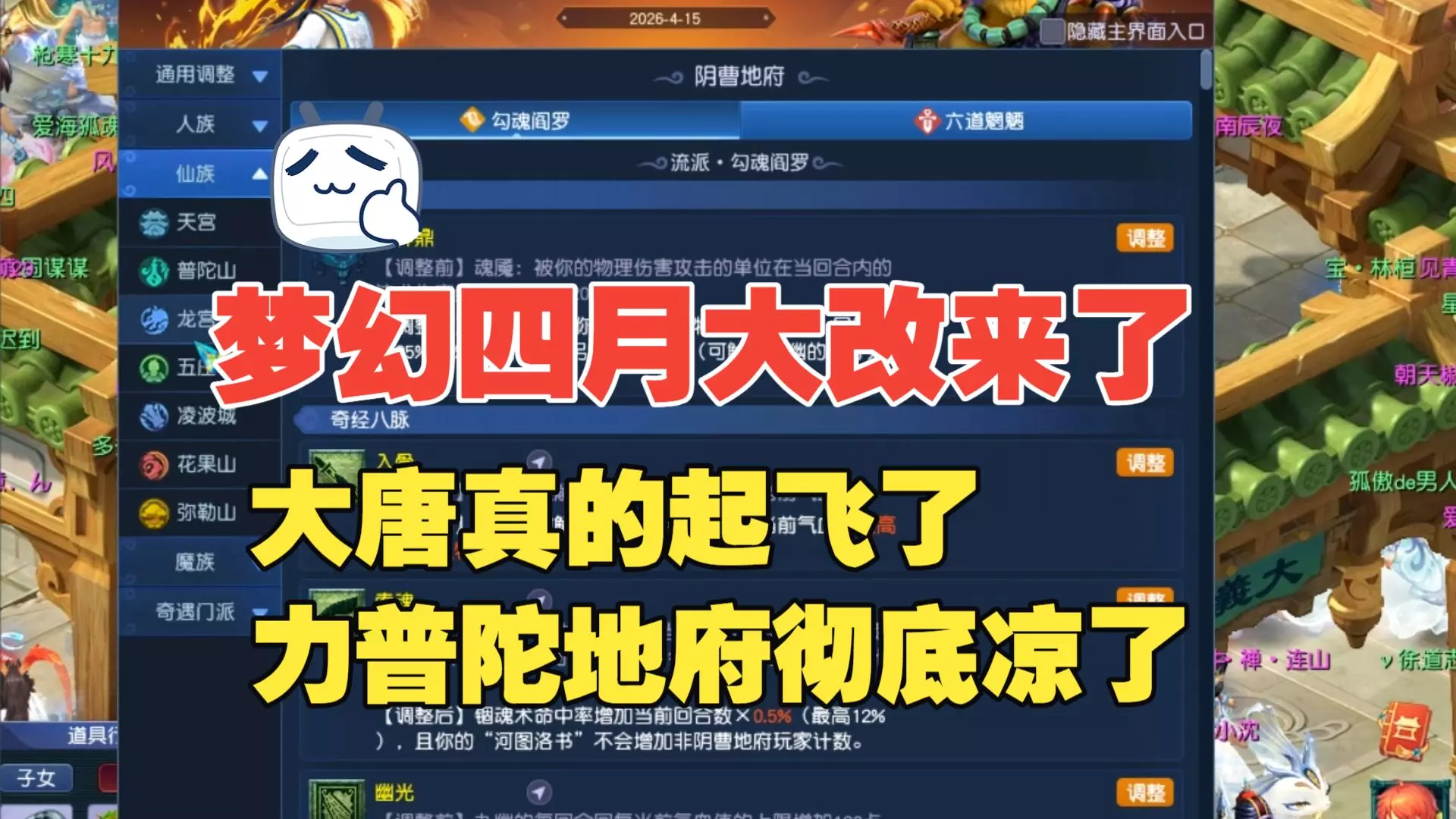 梦幻四月大改,大唐这次是真的起飞了!地府力普陀天塌了!