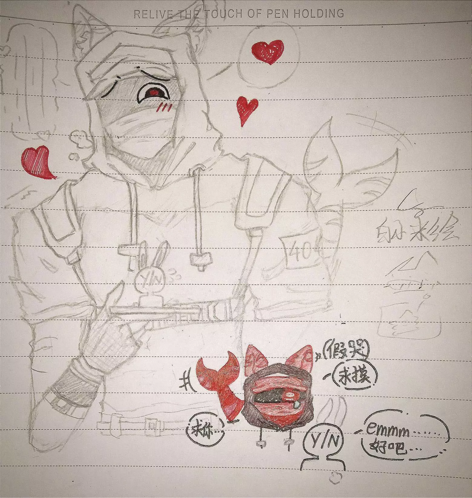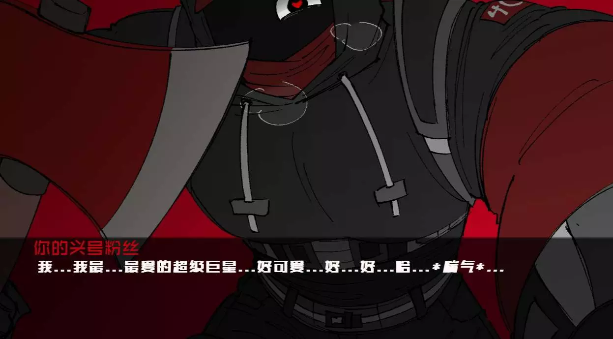 这张画的是私设,因为此男体型巨大,有鲨鱼齿,但是又有狗狗属性,领地意识又很强,非常呆,很容易上当受骗。就私设了狼耳朵和鲨鱼尾巴,简称:鲨狼(傻狼)本来是想换另一只手拿着叉子的。想表达404把主控吞之入腹的画面,但是又懒得画了👿,我手臂画的像无骨鸡爪😱😱😭,大家将就着看吧。。。。。。覆面系给我画的像伪人。。。。。