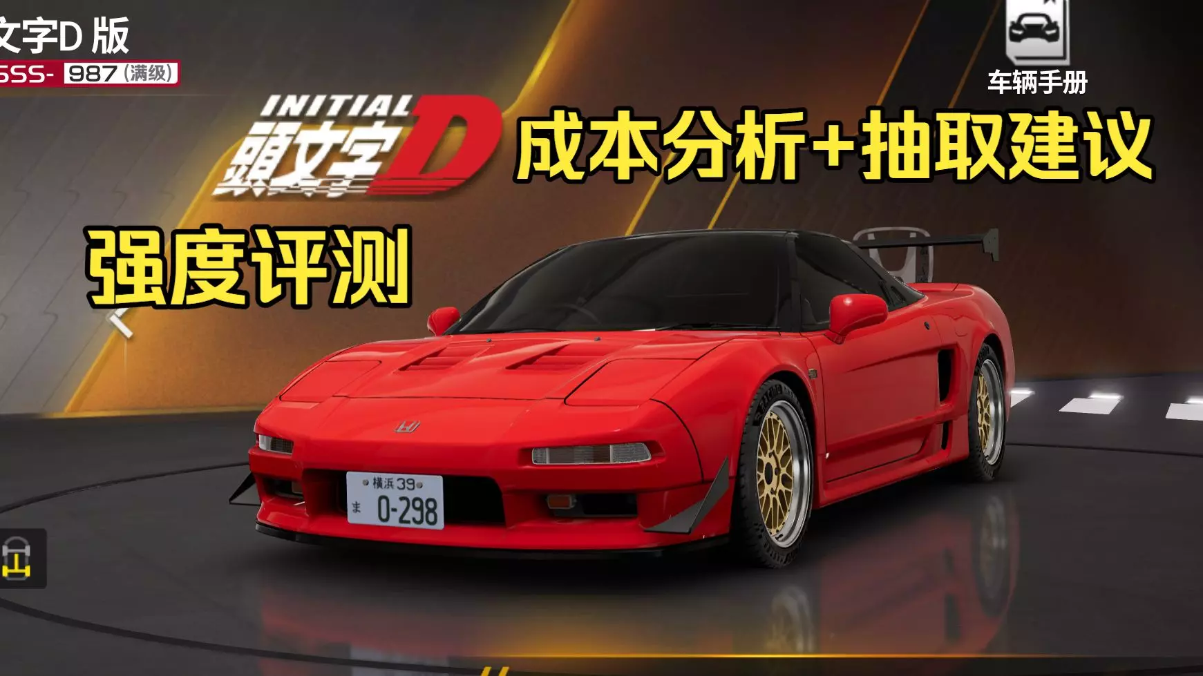 这是《巅峰极速》的本田NSX-R'92头文字D版联动攻略,包含该车辆的不同阶位强度、升阶性价比分析,还给出抽取的成本、返利计算及抽取策略,助力玩家获取该联动车辆。