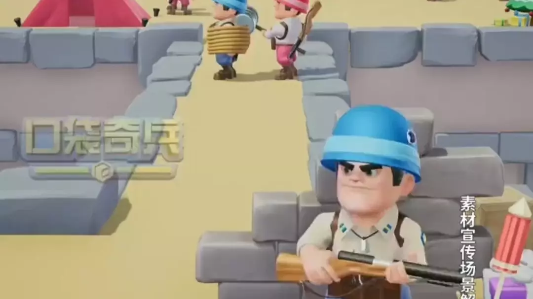 这是《口袋奇兵》的游戏集锦,展示了游戏里的战斗场景,蓝色坦克1打2不敌后,使用“超级吸尘器”能力,还有角色战略性撤退的趣味内容,该玩法8级以上可从常规活动小游戏中心进入。