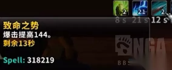 触发急速和精通,之前测试,覆盖率在30%左右;触发全能不稳,覆盖率在10~20%;触发暴击,覆盖率在70%左右。但是触发暴击需要叠层,很多时候都是一两层,很难叠到5层,在buff之后好叠加一些了。 触发绿字刚出不给力,buff后还不错,特别是急速,翻了3倍,1275急速,对于部分专精来说非常好,而且触发的绿字,也能受到百分比绿字的加成。 百分比是所有来源都加成,所以腐蚀效果触发的绿字,嗜血,饰品,特质增加的急速,也都会受到加成,腐蚀效果的联动是非常变态的。 须臾洞察,最近少有的被砍的腐蚀效果,几率获得须臾洞察后降低接下来1个法术冷却3秒,之前是降低接下来3个法术冷却2秒。 这个东西一部分职业用很强,比如火法。之前超线程护腕加这个腐蚀,火法爆发很夸张,现在砍了之后,须臾洞察没之前强了。