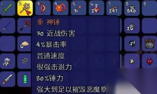 2.击败肉山,可获得掉落物武器神锤;
