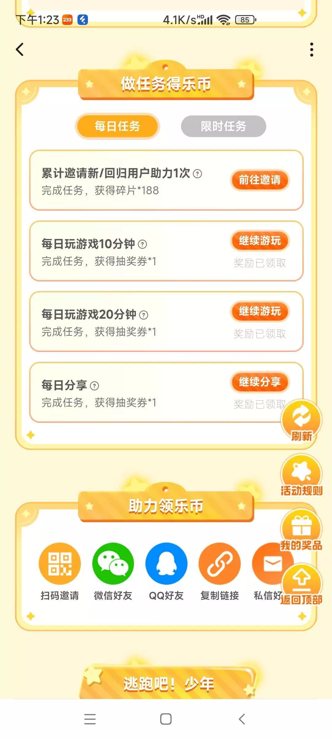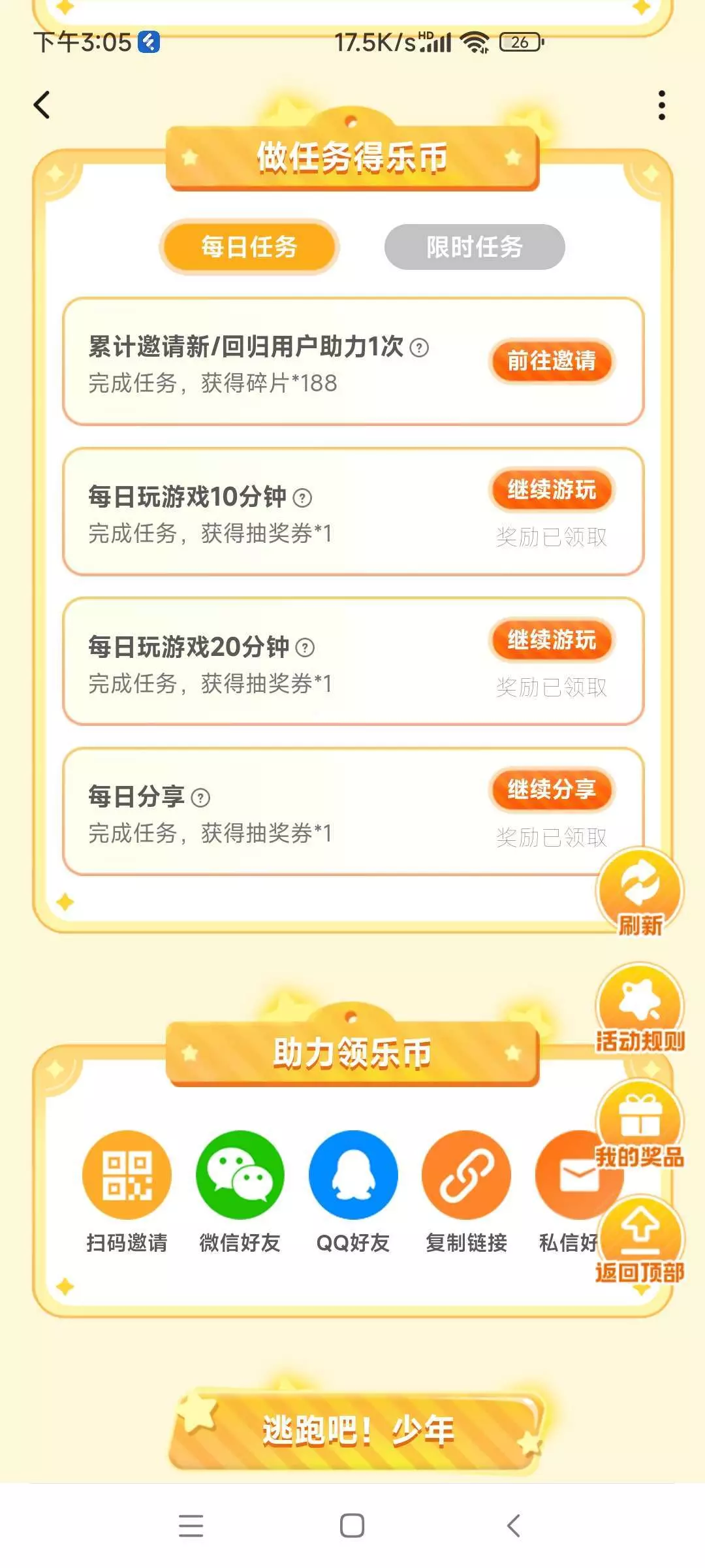 找回归用户或者新用户帮忙助力。