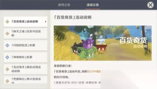 立本会随机出现在提瓦大陆,因为他的出现场所不是固定的,所以玩家需要根据线索寻找,奇箱一共有7种,不能重复接受,每天最多接受奇箱的机会。 也就是说,要领完整的奇迹盒子至少需要7天的时间,活动从10月26日到11月2日,总共只有8天,大家需要赶紧做。 得到打开奇怪商店的机会后,如果当天不打开的话,可以累计,活动结束前可以打开,活动结束的话,累计的打开机会也会失效!