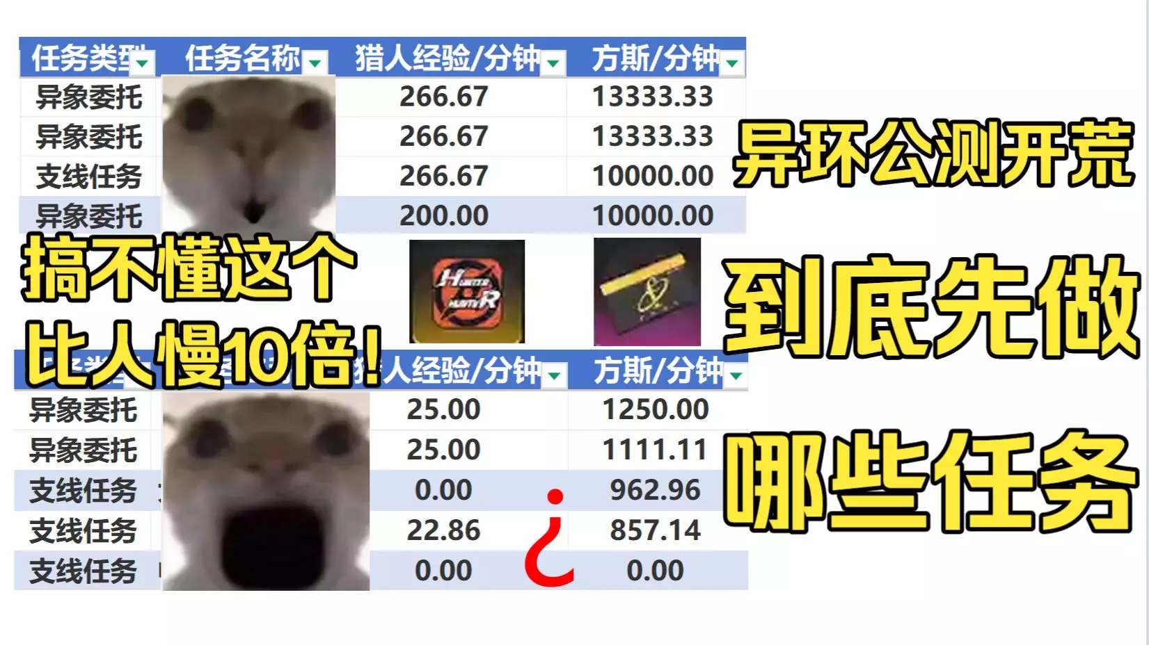 0:00 开服盛况回顾 1:34 公测房产调整一览以及性价比分析(配合开荒攻略看) 3:40 开荒详细流程说明 8:00 猎人等级卡级的高效解决办法 14:38 地图上的支线点怎么看 15:57 为什么打了对应的怪还是拿不到免费S级弧盘 16:17 总结以及一些其他提醒 攻略自取裙:1097072185