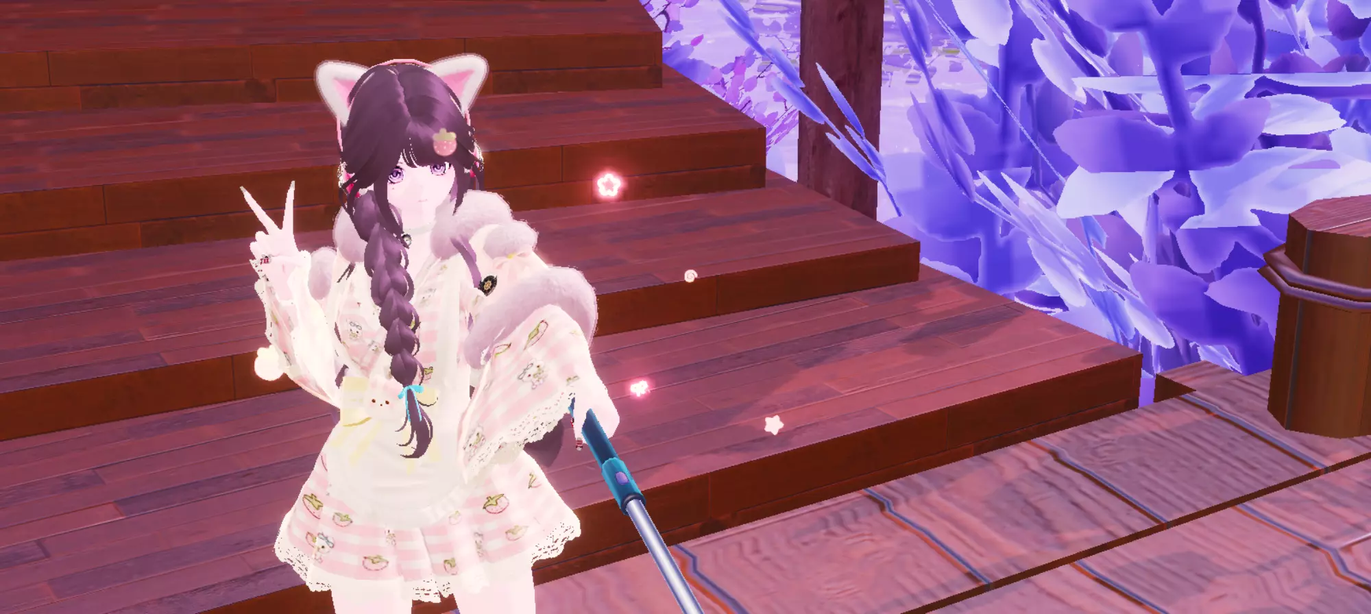 “一阵风吹来,紫色的叶子掉落”