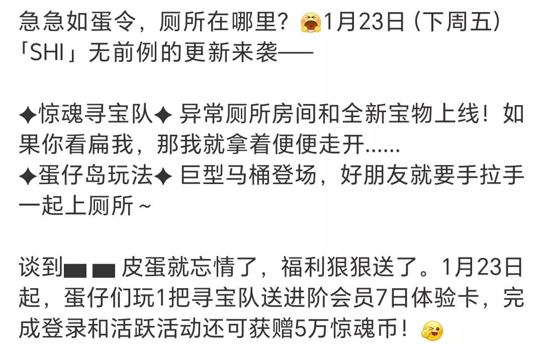 冈易越来越奇怪了,便便都做成金了,但是1月23日(下周五)起玩一局惊魂寻宝队就能获得7日进阶会员