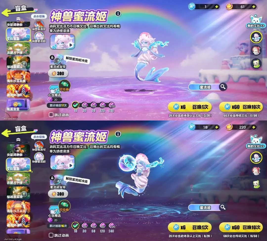 28个彩虹币中了,没保底。嘻嘻😁