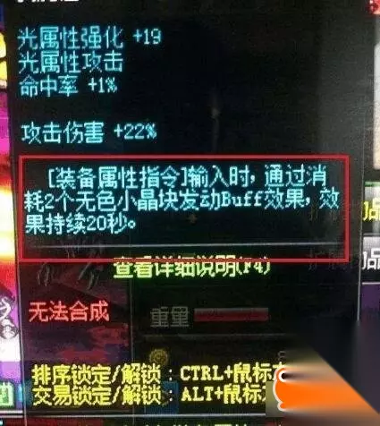 假如当你输入该装备属性时,可以使自身增加力量,还能增加攻击力,效果会持续20秒,一般指令键改成大小写CapsLock键位就行了。要知道这都属于武器的特殊技能,一般常见于圣耀救赎和荒古武器,这么说玩家该不会没有荒古吧。