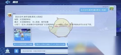 跑跑卡丁车手游中在太空中搜寻宝藏任务是这周的新任务,这个任务是需要去找到宝藏的,那么太空中搜寻宝藏在哪里呢?接下来小编就给大家带来了在太空中搜寻宝藏任务攻略,快来一起看看吧!