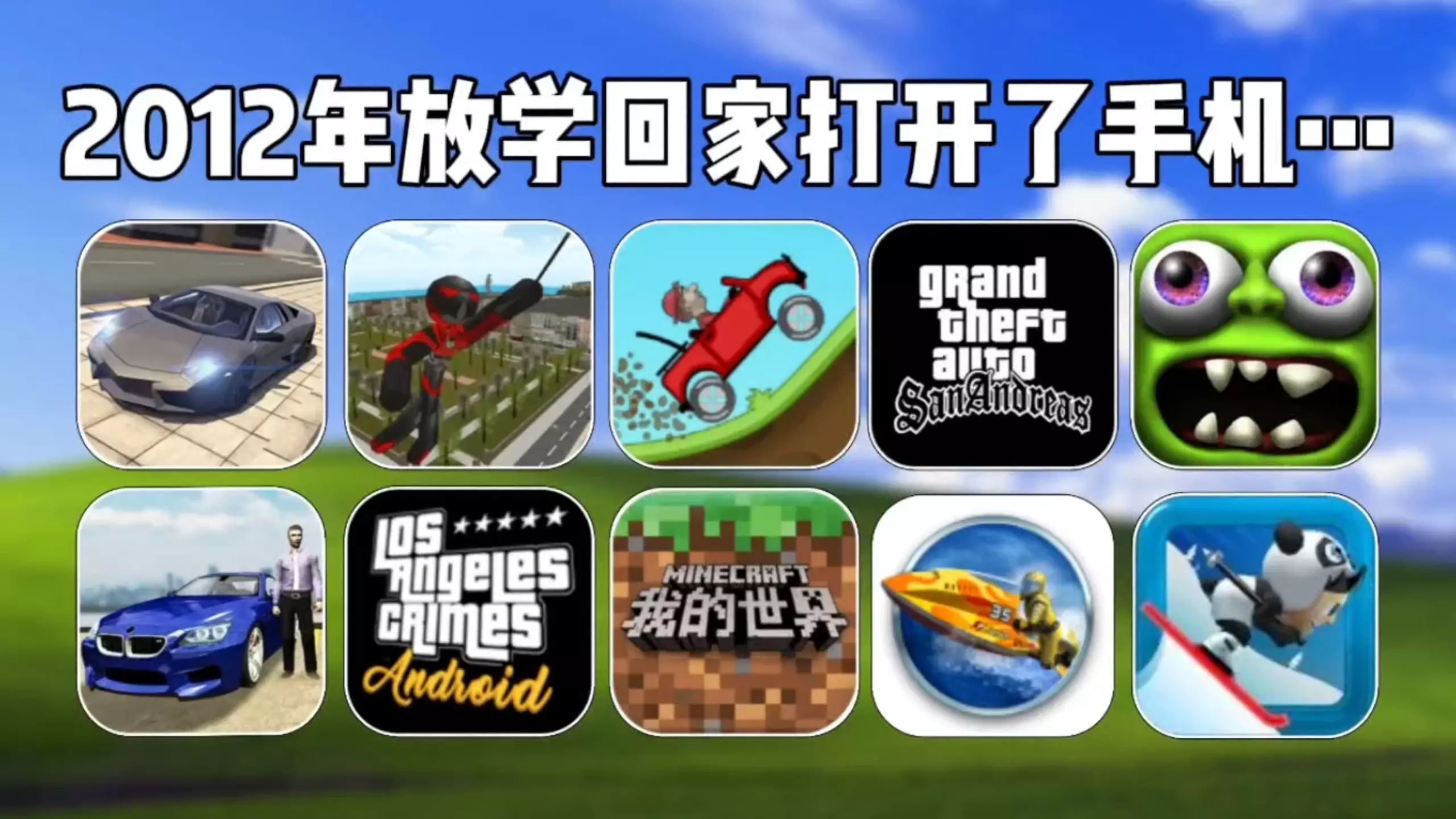2012年的手机里,藏着我们回不去的童年! 1.至尊极速狂飙 2.绳索火柴人 3.登山赛车 4.圣安地列斯 5.僵尸尖叫 6.手动挡停车场 7.洛杉矶犯罪 8.…
