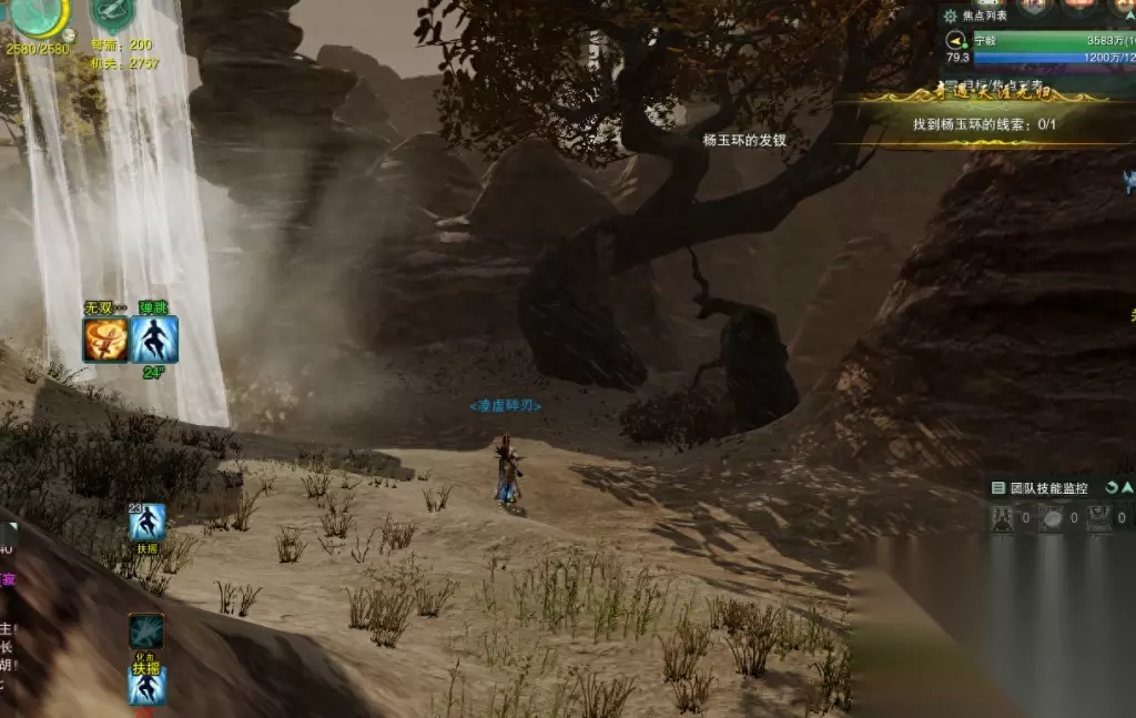 那这么说,这段剧情的时间应该发生在安史之乱前后,因为接下来我们就要去打一线天,寻找杨玉环的线索了。 100级之后开放了【武林通鉴·无双】模式,把秘境难度降低到当年的等级,于是可以不用走跳山路线了! 进本直接找黄字9527开无双,过程中无需打老一老二,按原本路线走大路一直走到老三门口。