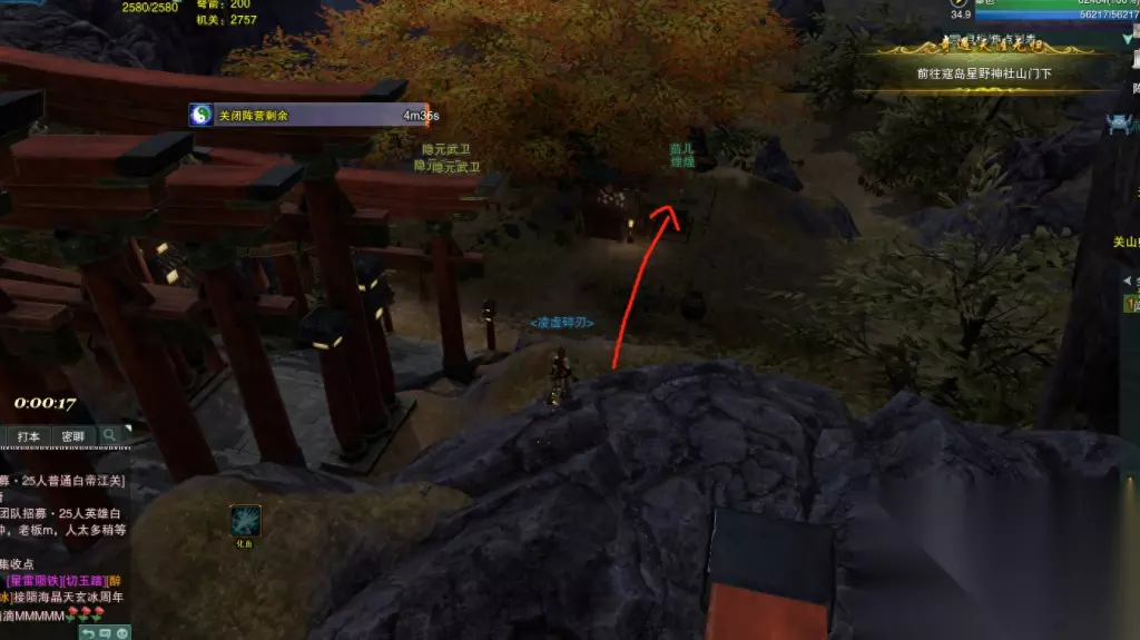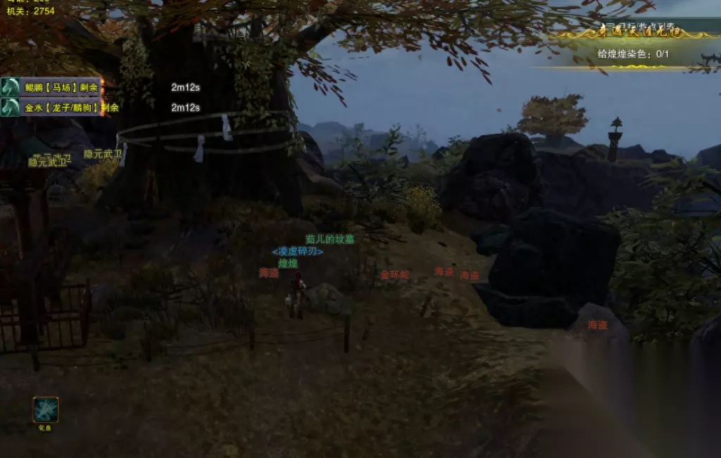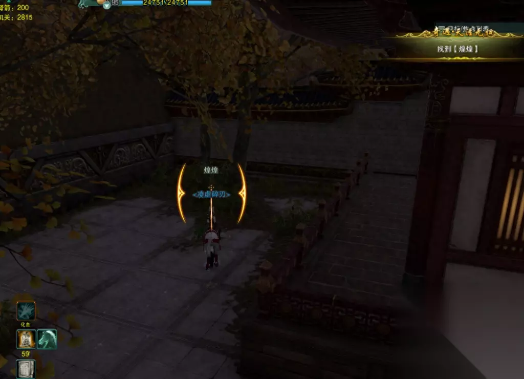 【煌煌】就在这个位置。捡到煌煌之后,马上会出现三个黑衣人,建议奶心法记得提前切输出! 黑衣人只是95级,随便一个技能就打完了。