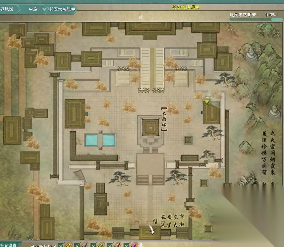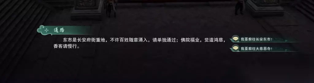 这时上马往【大慈恩寺】走,就是长安东市那个方向,选大慈恩寺即可,进去之后往右走。