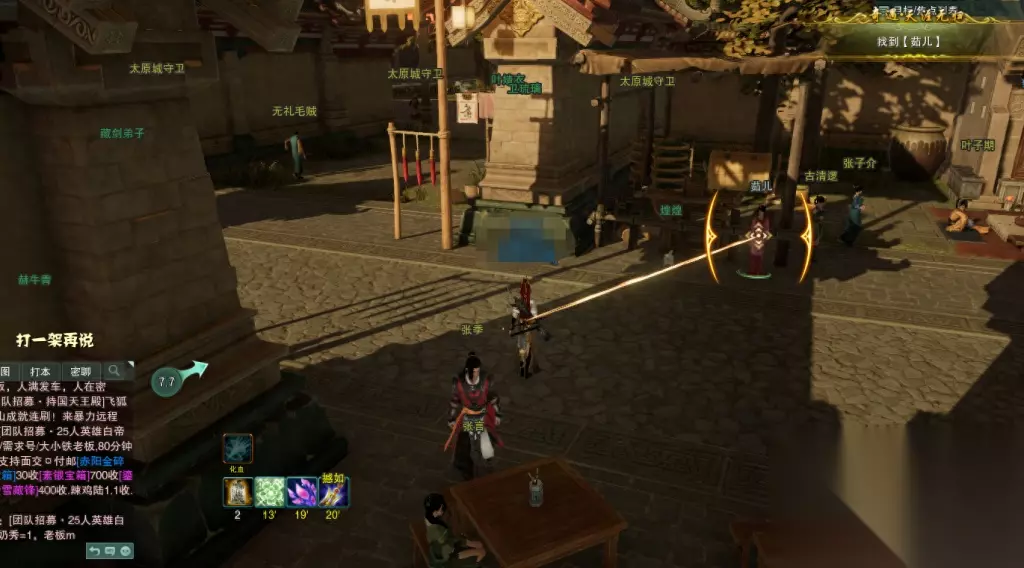 在出这个奇遇之前我把签名改成了“出大奇遇就买盒子”,第一次改这个出的少年行,第二次改出的天涯,不得不说,贴吧秘诀,有丶东西。 茶馆篇 首先我们出奇遇后就一直找老板娘对话,她会让你去找【茹儿】。